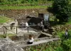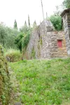 Contrast that with tiny Sant Andrea di Compito in the hills above Lucca. The town dates to the 13th century, and according to Wikipedia’s map legend, it has no inhabitants. Actually, we saw quite a few, particularly at the local stream where you can fill water bottles; the little town is famous for its streams of pure mountain water. Oh, and camellias which were past flowering. By the time we left, cars lined both sides of the narrow road to the spring; clearly, Sunday afternoon is when you refill your water bottles and flagons. There is much stone by the way of houses and walls, many winding and narrow roads, cobbled lanes and a stone tower complete with beacon fitting for signalling.